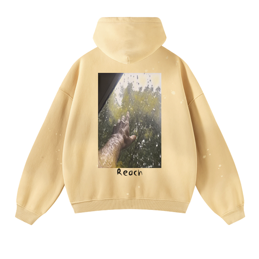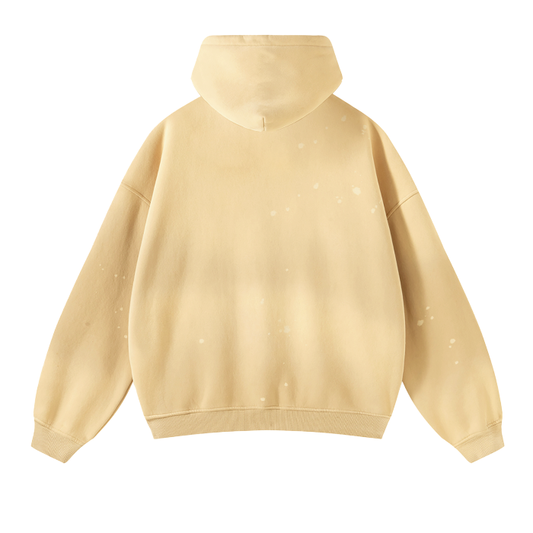 (Ash Apricot)Streetwear Unisex Monkey Washed Frayed Effect Hoodie