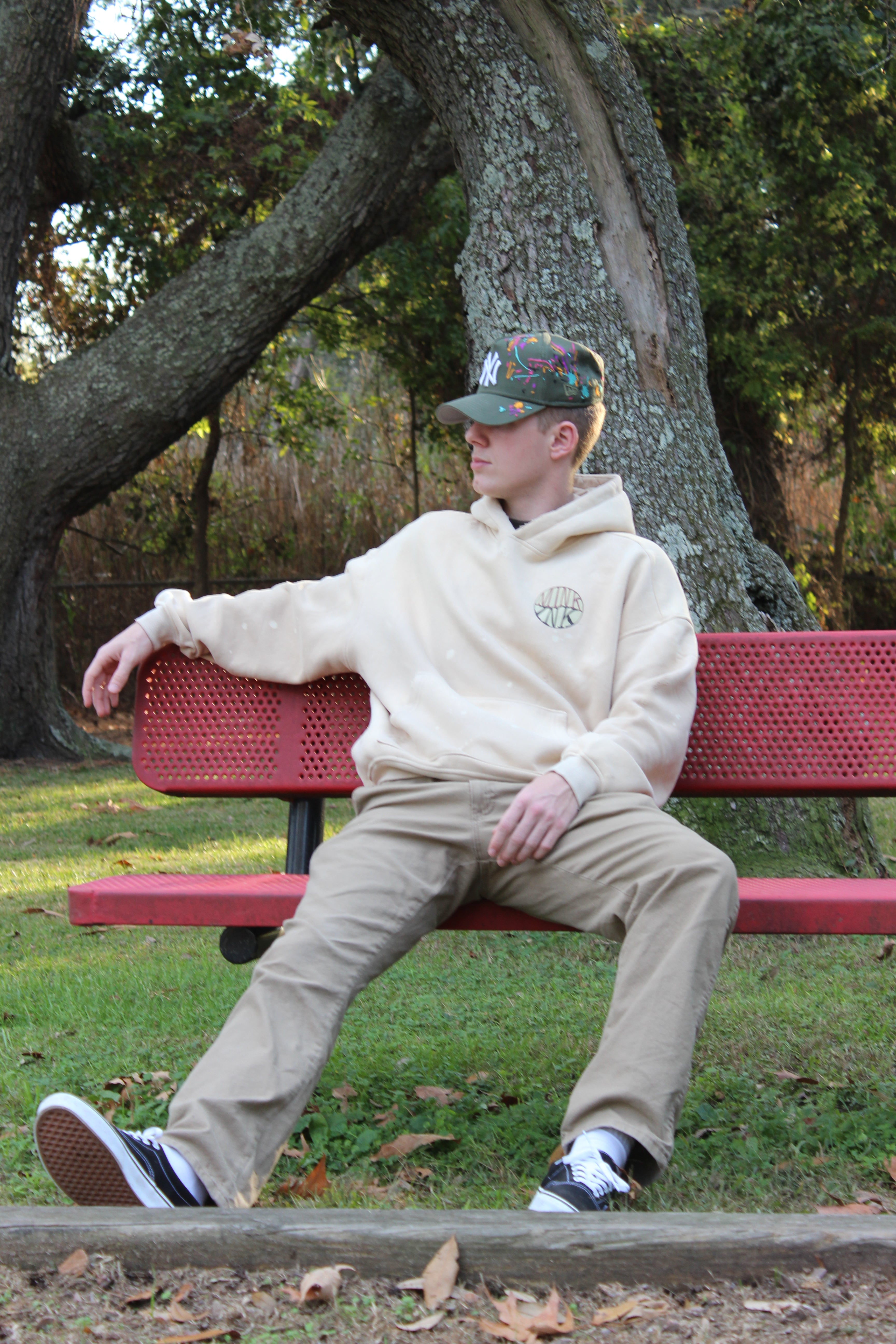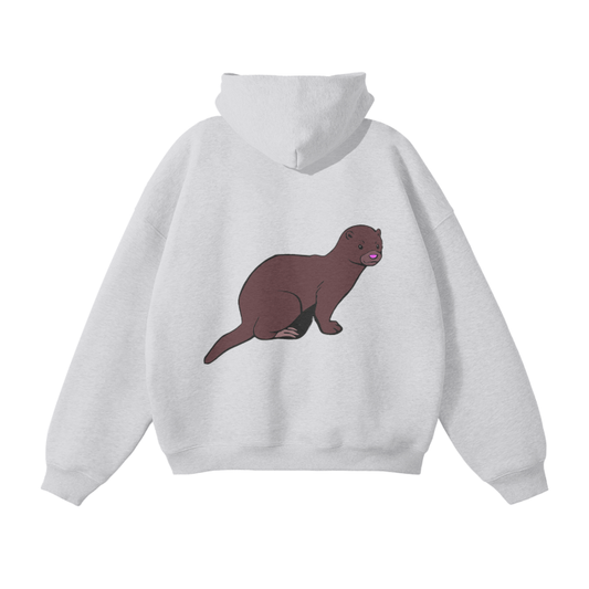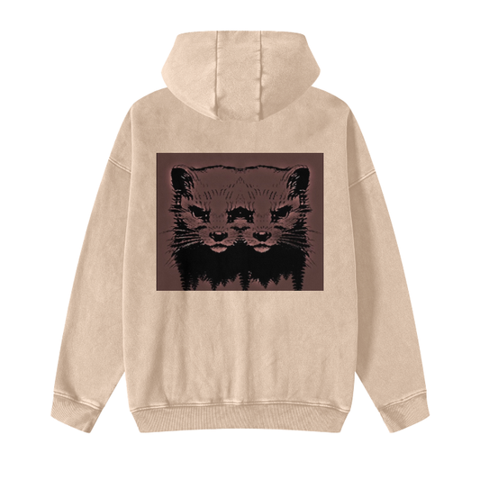 (Ash Apricot)Streetwear Unisex Monkey Washed Frayed Effect Hoodie